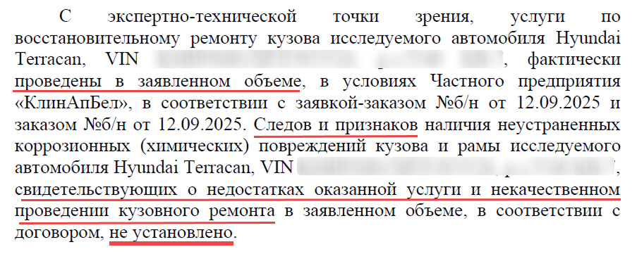 По заключению "Бюро автотехнических экспертиз" работы выполнены качественно и в полном соответствии с технологией